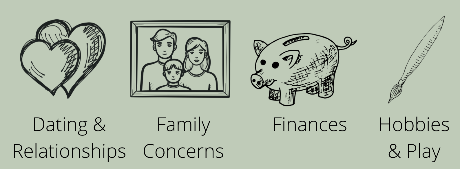 We work together to define your goals and the direction to work toward greater fulfillment and reaching your dreams.